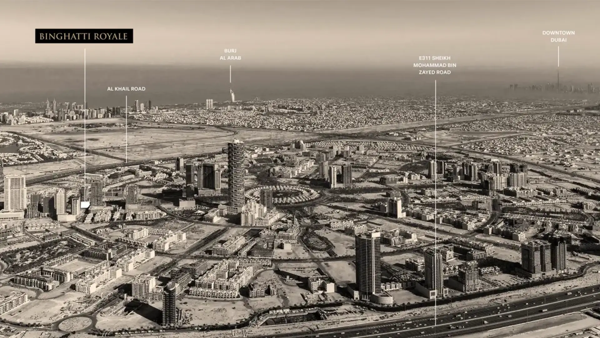 Binghatti Royale, a luxury high-rise by Binghatti Developers, features 1 to 3-bedroom apartments across 37 floors in Jumeirah Village Circle (JVC). The building’s design elegantly merges classical and modern styles, with interiors crafted to maximize natural light and comfort.